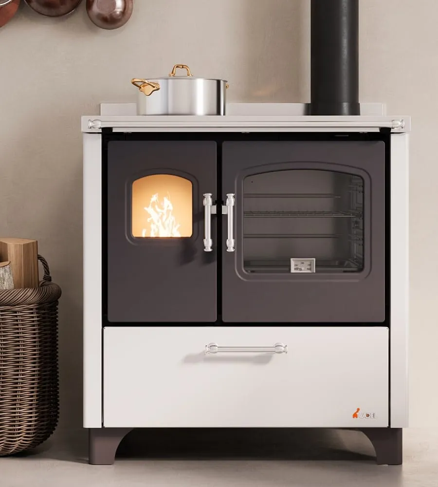 A libera installazione o da inserimento, queste due cucine versatili si adattano a qualsiasi ambiente. Caratterizzate da porte in ghisa, eleganti maniglie e corrimano in acciaio, camera di combustione con interno in refrattario. Tra gli accessori sono disponibili dei piedini estetici e uno zoccolo in acciaio.