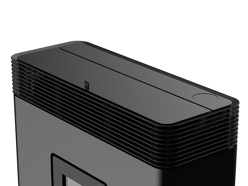 Un design tutto nuovo mantiene intatta la caratteristica più gradita della “vecchia” Philo: la possibilità di regolare i flussi d’aria in più direzioni. Aprendo lo sportello sul top, si accede a due manopole, una sul lato sinistro e una sul lato destro, con le quali si può gestire a piacere la direzione del flusso di calore in ambiente. La stufa è dotata in totale di tre ventilatori: uno per la ventilazione ambiente, due che possono essere canalizzati per riscaldare più stanze, anche non contigue o su piani diversi della casa.