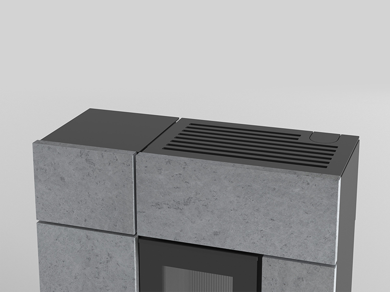 Stufa a pellet in pietra o acciaio, canalizzata, design essenziale