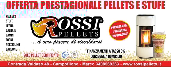 La Rossi Pellets® è un rinomato distributore e fornitore di combustibile ecologico per numerose tipologie di impianti di riscaldamento attivo nelle Marche e in Abruzzo nelle province di Fermo,Ascoli Piceno,Macerata,Ancona e Teramo.Si occupa della vendita di un vasto assortimento di pellet austriaci, tedeschi e canadesi di puro legno abete o faggio, nocciolino d'oliva,legna da ardere, carbone argentino e tronchetti di puro faggio, certificati dalla elevata qualità dei processi di lavorazione, stagionatura e essicazione. La Rossi Pellets® sapra' conquistarvi con le numerose offerte e le varie soluzioni di stile, integrabili nella vostra casa per colorazioni, materiali e dimensioni: stufe a pellet o a legna, caldaie a biomassa o caminetti in stile moderno o classico si caratterizzano per alto rendimento calorico e garanzia di basso consumo di combustibile. La Rossi Pellets® si pone inoltre come rivenditore di bombole gpl e gas.