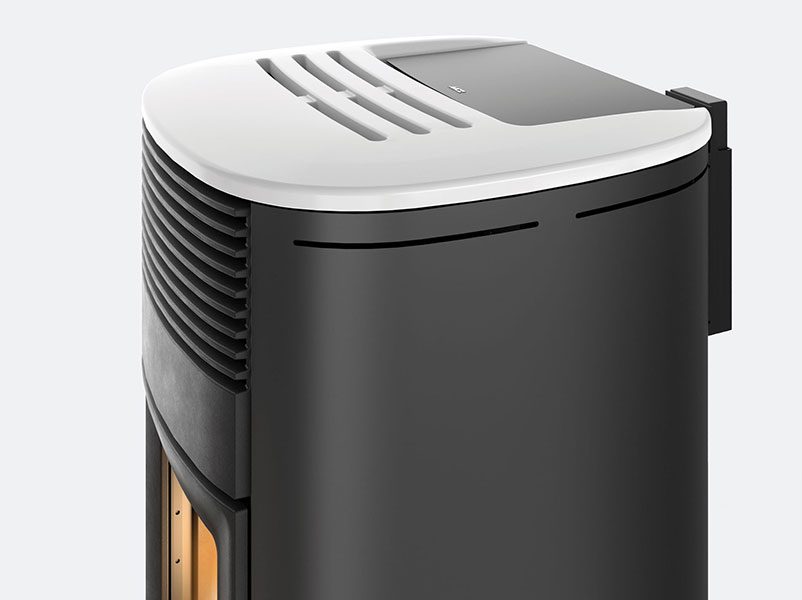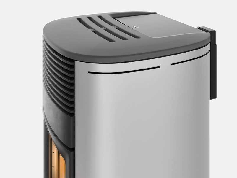 L’apertura dello sportello di carico del pellet è stata aumentata tra il +27% e il +40% su tutte le versioni, anche con scarico superiore, per facilitare le operazioni di riempimento. L’impugnatura dello sportello è stata studiata per lasciare all’utente solo la piacevolezza delle forme.