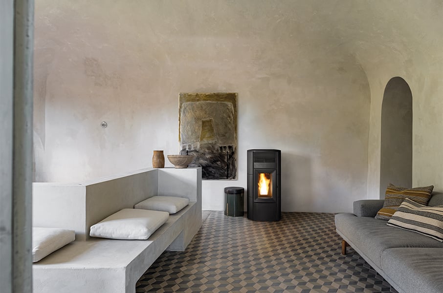 Stufa a pellet in ceramica o metallo, versioni ad aria, canalizzate, idrostufa e con tecnologia Core, certificata 5 stelle ariaPULITA